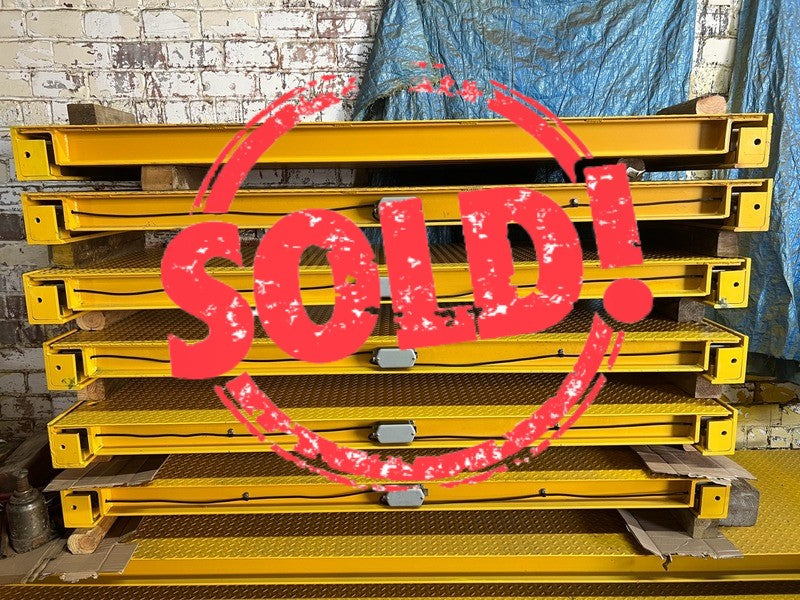 Our scales are currently being used by many manufacturers of the heaviest excavating equipment to verify the axle rating of up to 100,000 lbs per axle. The construction and design will give many years of trouble free usage in harsh environments. Our portable axle scales are backed by a two year limited warranty. Scale Height: Low Profile design 6′′ overall height provides 1 3/4′′ ground clearance. Load Cells: 25,000 & 40,000 pound capacity. Nickel plated IP-67. Junction Boxes: Nema 4 rated. Tucked inside eye beams protected from truck traffic. Ramps: Detachable ramps 30′′x 36′′ with mounting tabs not needed for pit installation. I-Beams: 4′′ 13 pounds per foot. Capacity up to 120,000 pounds. 30 x 24 or 30 x 36 optional ramps are available.